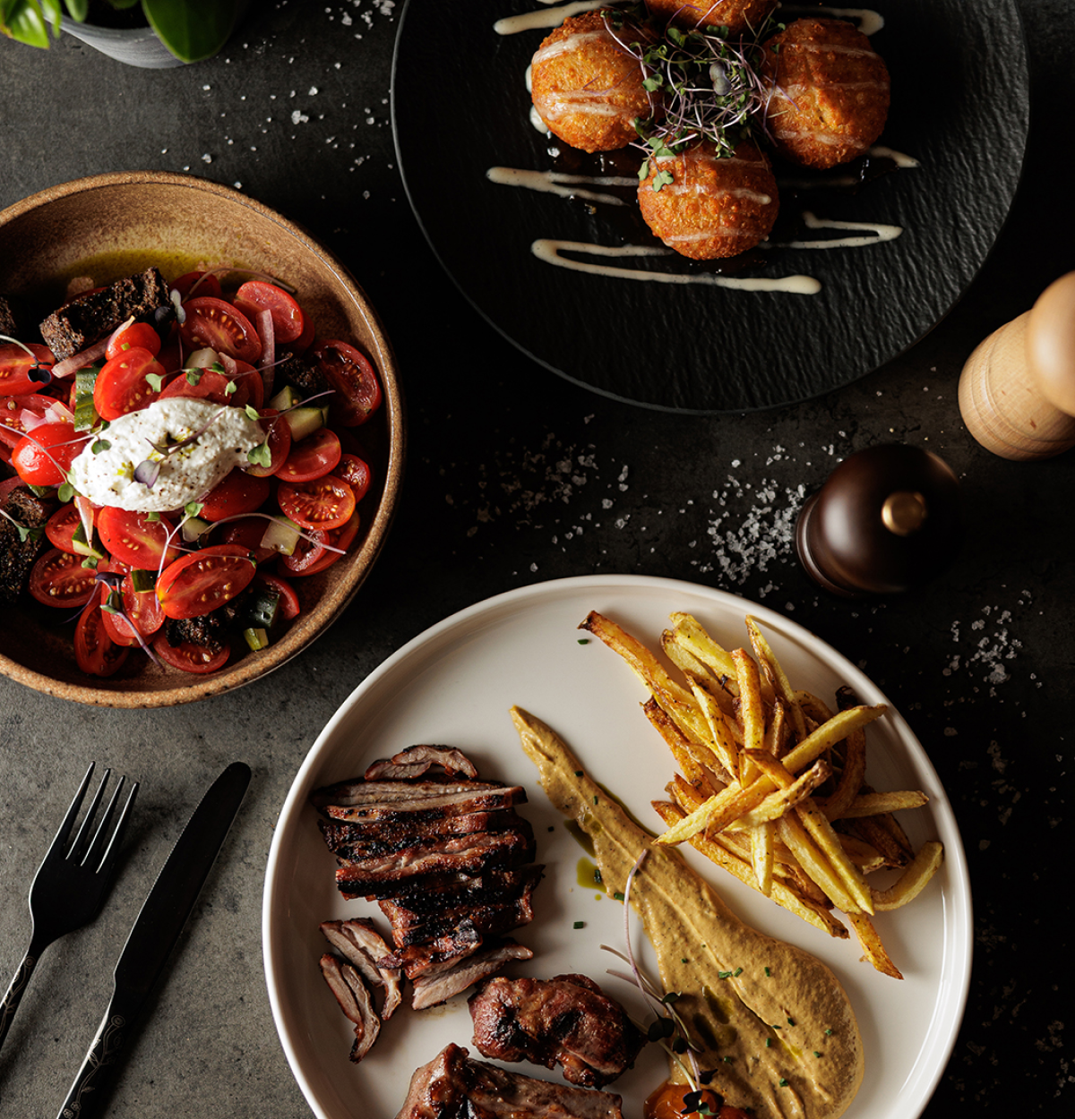 Slow cooked beef cheeks, mashed potato with black truffle, baby carrots, roast sauce.