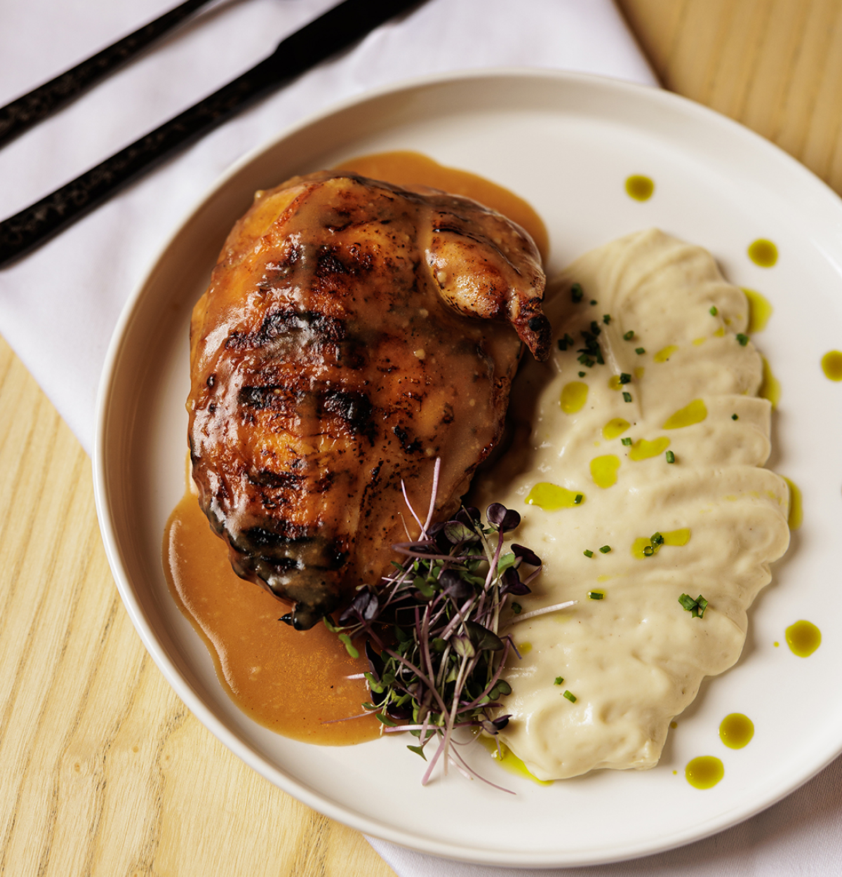 | Garnish | French fries with herbs, French fries with herbs, Baby potatoes with fresh herbs, Mashed potatoes with black truffle, Seasonal vegetables |
